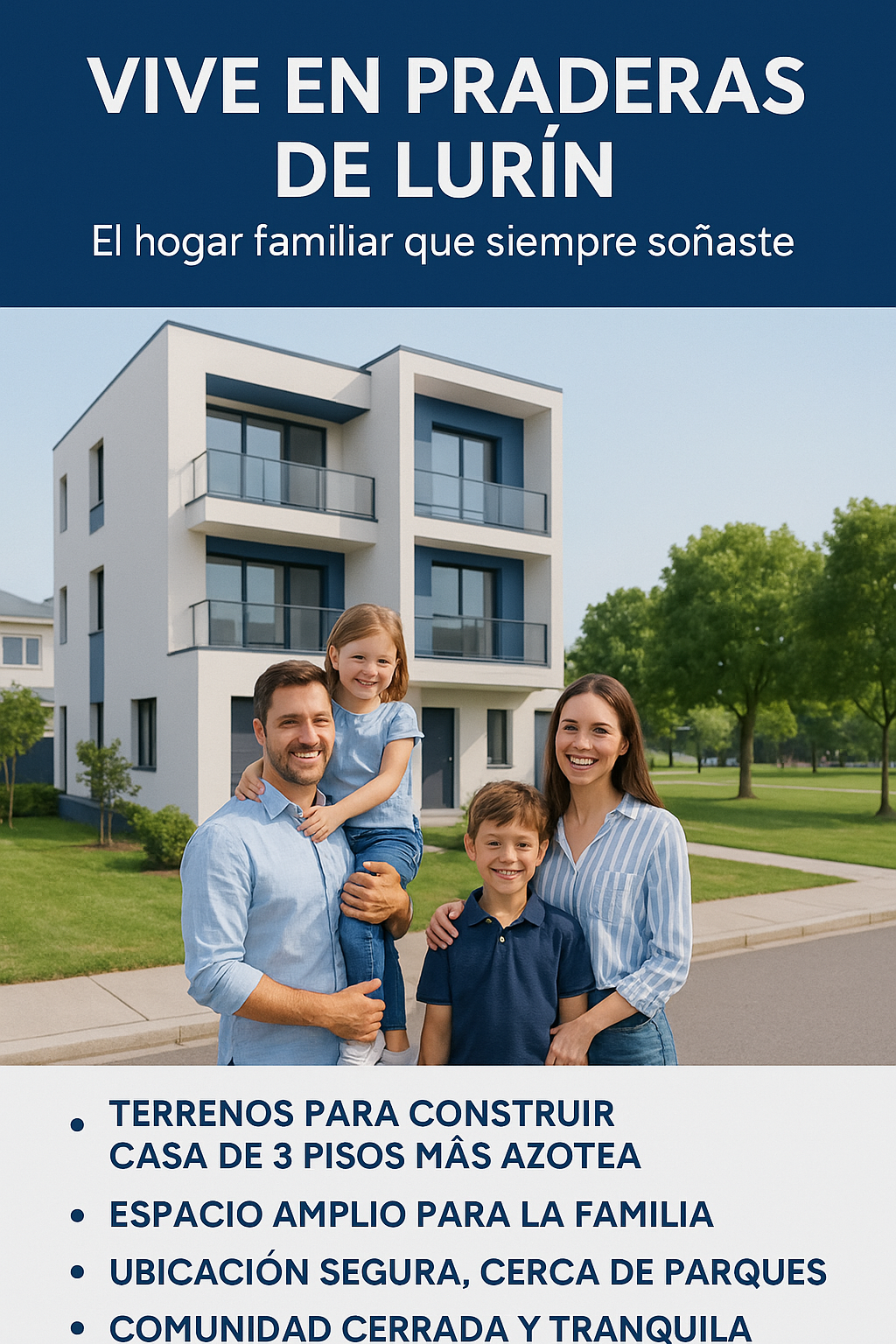 OPORTUNIDAD UNICA 💲💲✔ Terrenos ubicados en la URBANIZACION PRADERAS DE LURIN, con parques y a la Avenida Principal que une toda la urbanización. 🌳Luz, agua, desagüe, redes de agua y alcantarillado, pistas, veredas, amplios parques, juegos para niños, pórtico de seguridad y tranquera. 📌Excelente ubicación, bonita vista panorámica a la "Isla La Ballena", clima saludable, a 15 minutos de la playa de Lima Sur: Arica, Pulpos, El Silencio, Punta Hermosa. 🏘Los Terrenos tienen Título de Propiedad Inscrito en Registros Públicos de